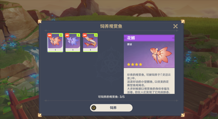 一个灵沼鱼池最多可以摆设5条观赏鱼