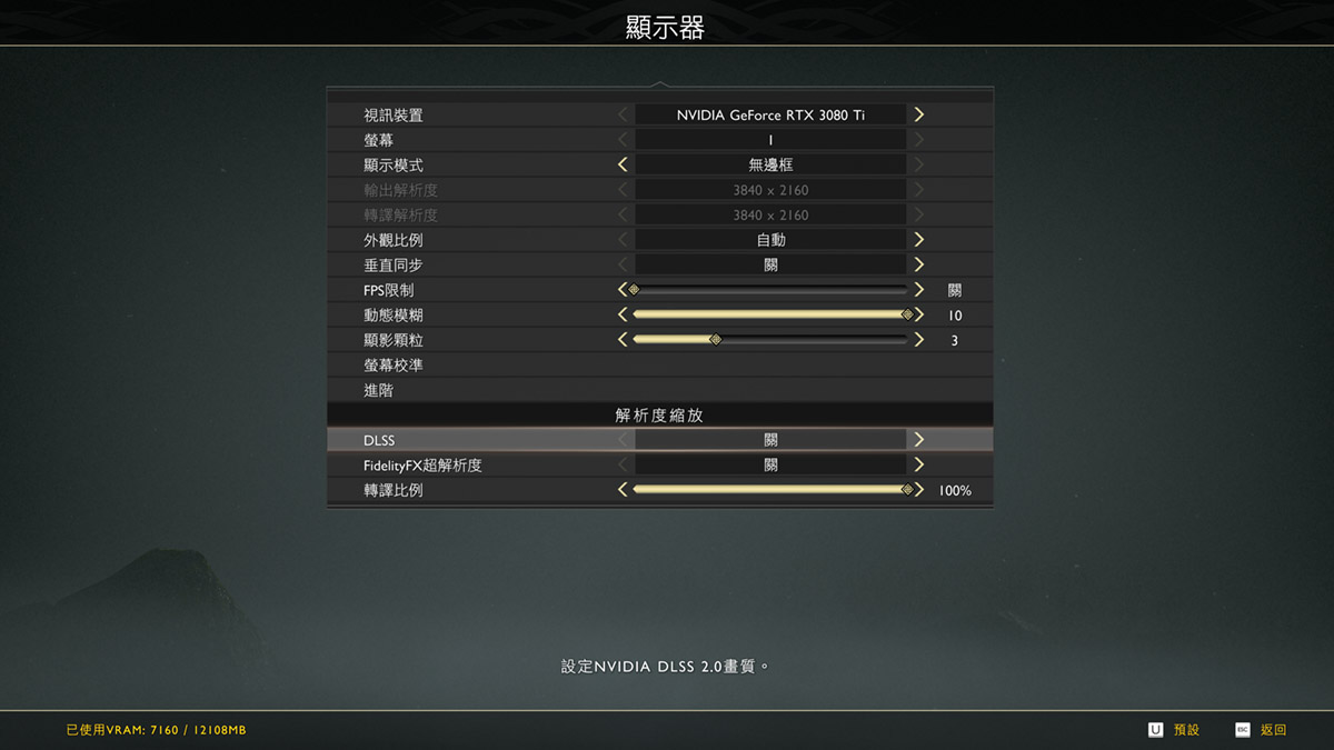 游戏支持的是DLSS的2.3.4版本,NVIDIA在DLSS 2.3之后为开发者提供了可调节DLSS的锐化级别的功能,但《战神4》并没有提供这一功能,而FSR则根本没提供这功能,游戏内的锐化级别全都是开发人员预先调好的,不论DLSS还是FSR,在《战神4》里面都有使用锐化滤镜。