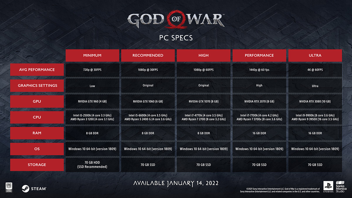 索尼PlayStation平台上的第一方大作《战神(God of War)》登陆了PC平台,由于该作是此系列的第四部,所以一般习惯上称它是《战神4》,目前它在STEAM平台上好评如潮,还没入手这款游戏的玩家应该都挺关心这款游戏对于硬件要求如何,因为官方给出的需求配置其实挺高的。