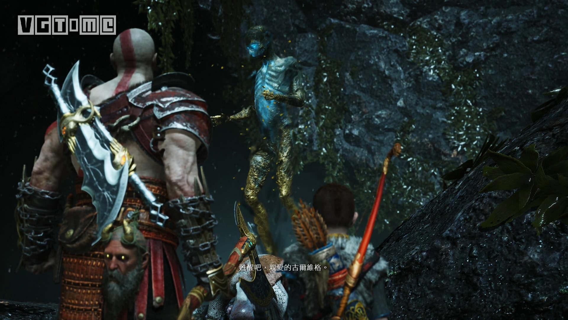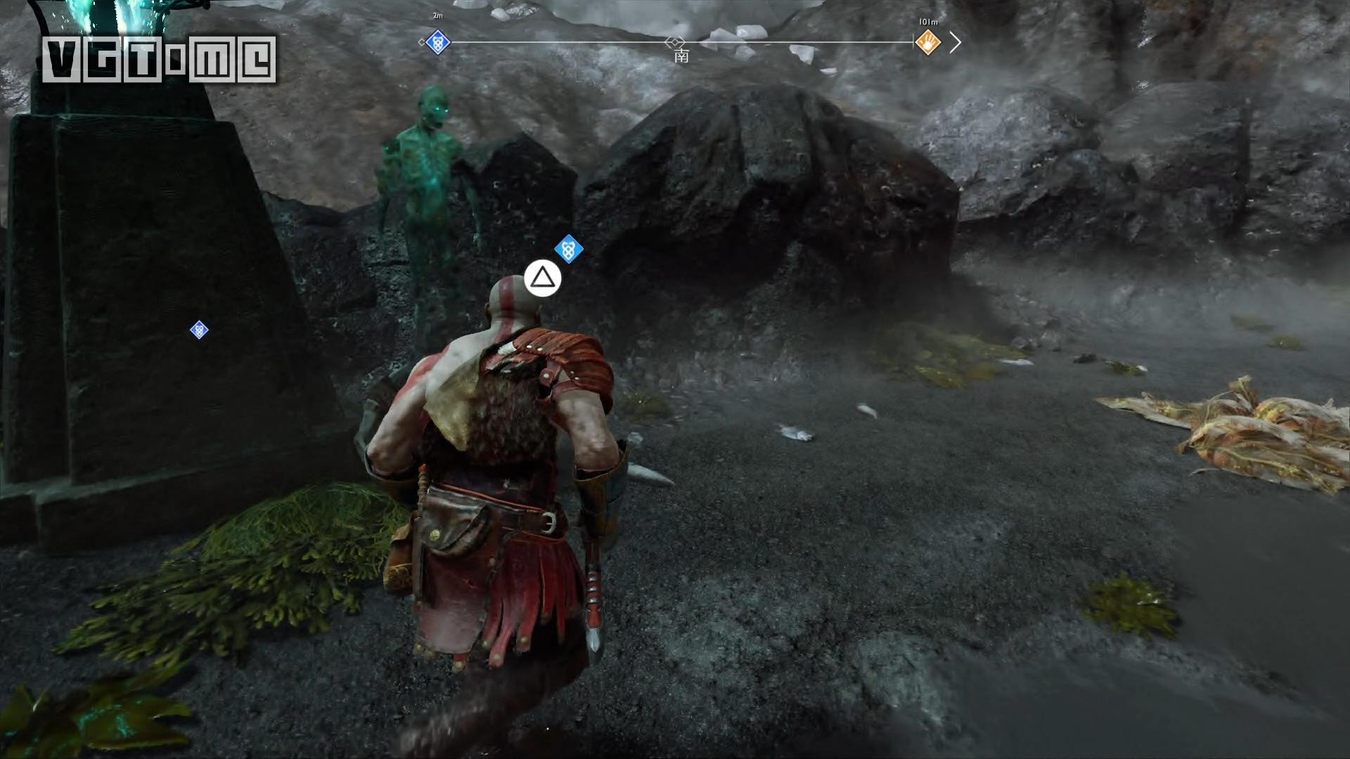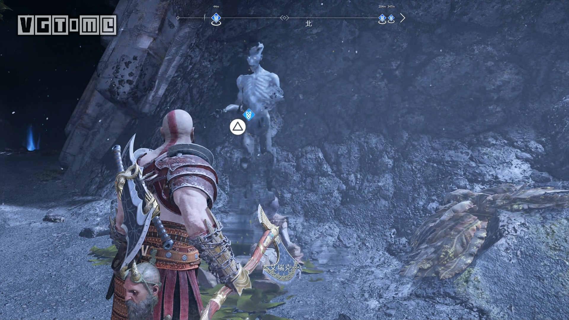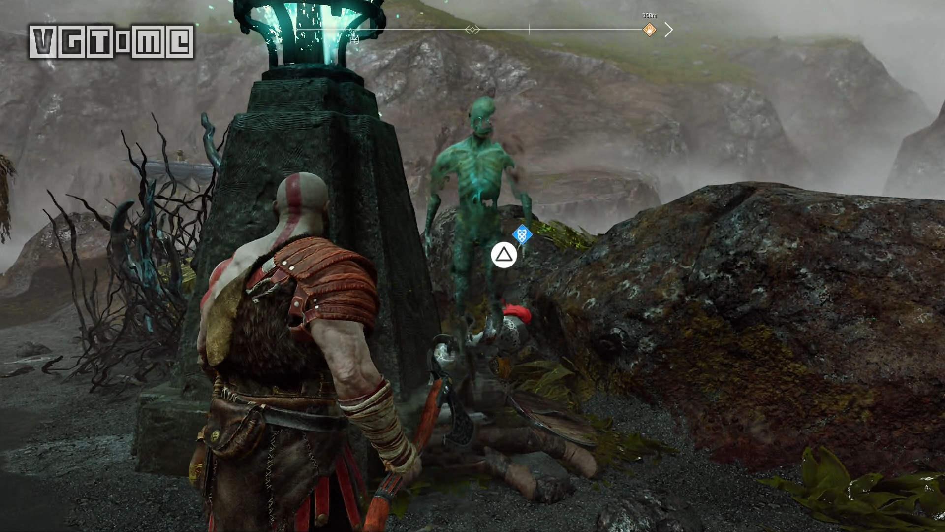 跳桥来到右边的区域,就会遇到一个愤怒的幽魂,他会请求奎托斯把雷神托尔的雕像毁掉。