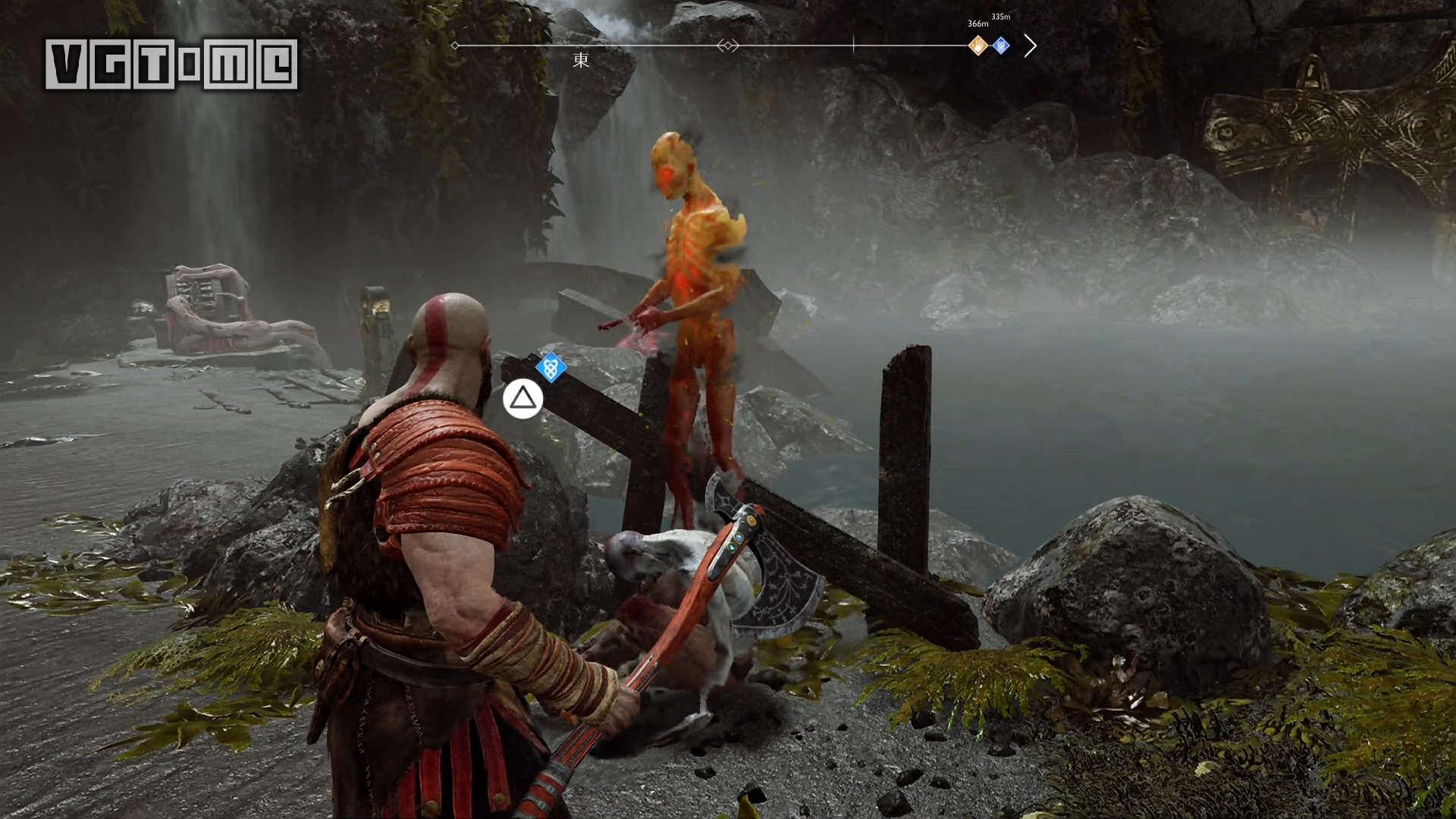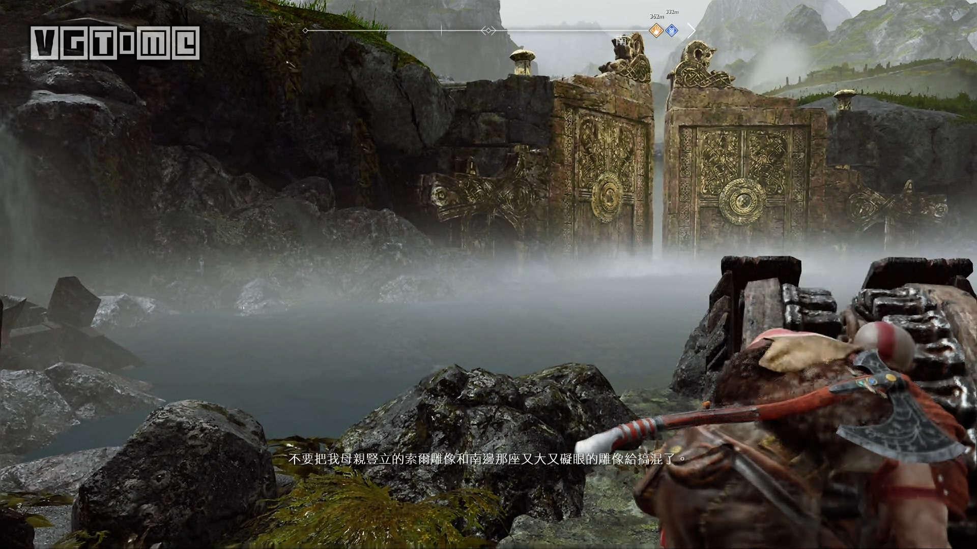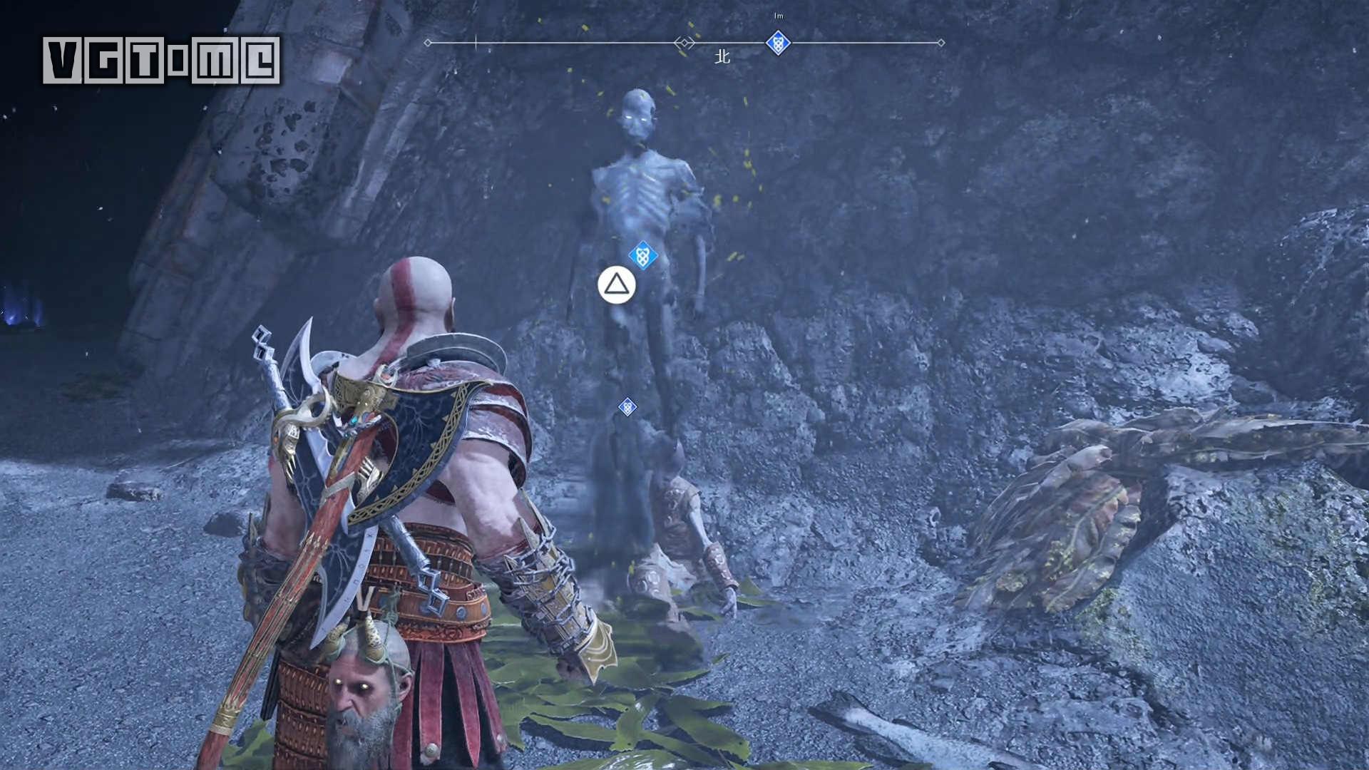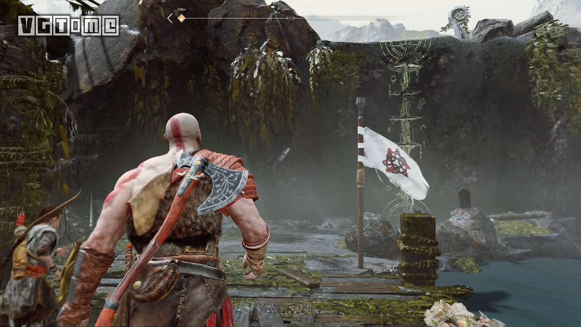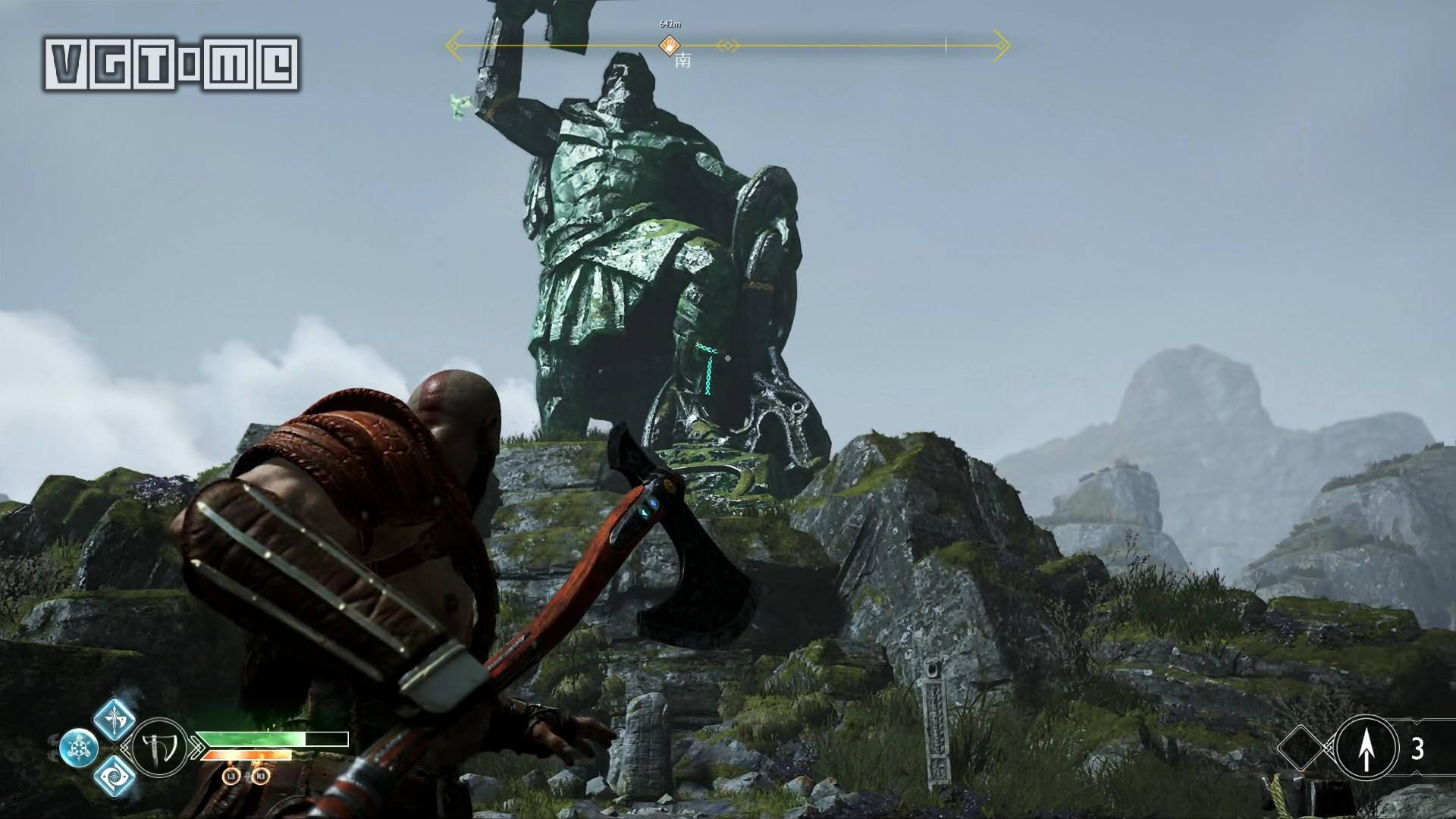 跳桥来到右边的区域,就会遇到一个愤怒的幽魂,他会请求奎托斯把雷神托尔的雕像毁掉。