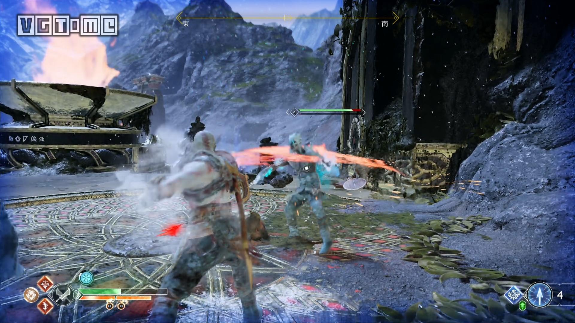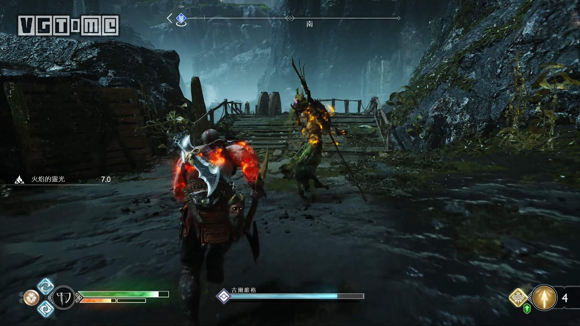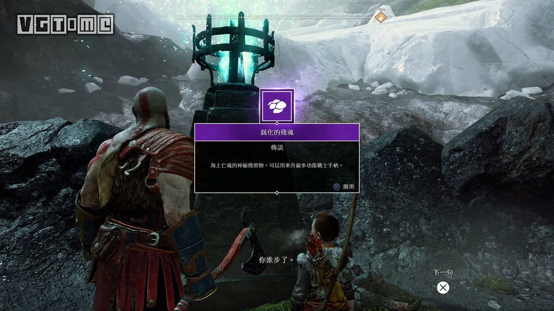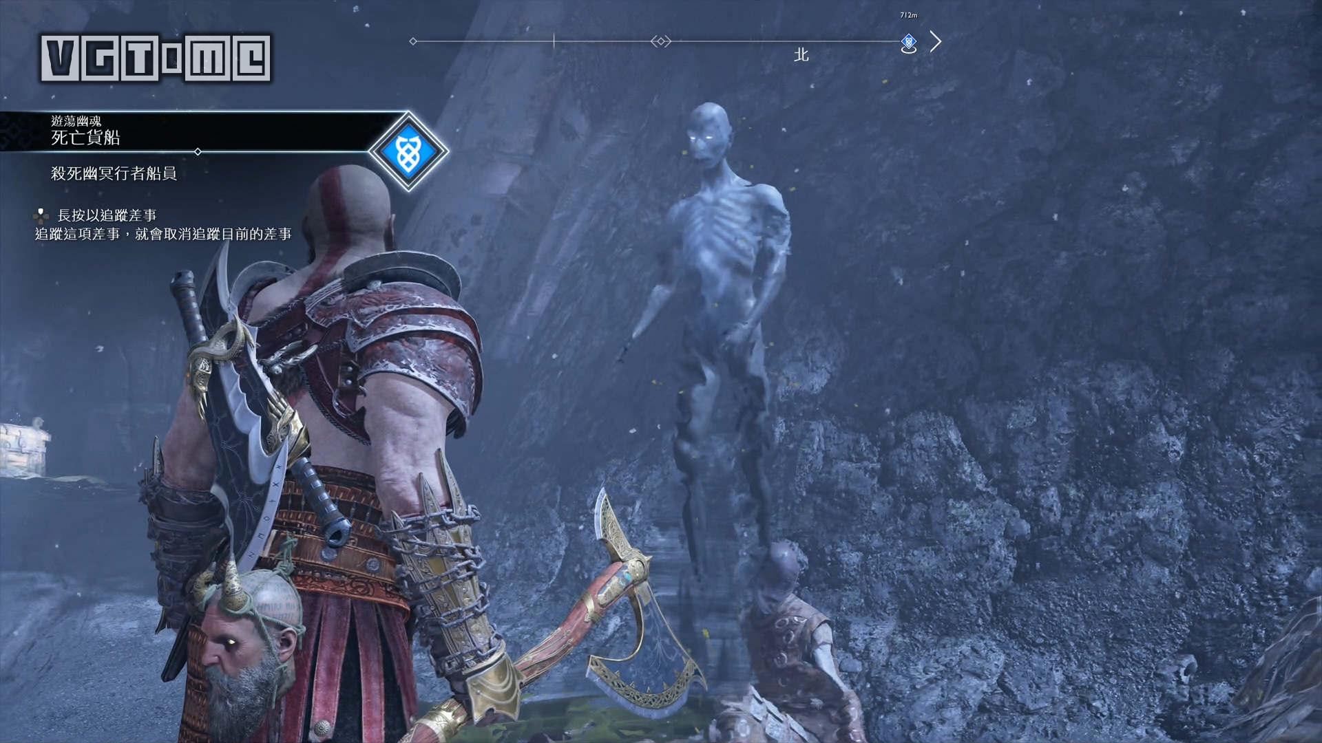 跳桥来到右边的区域,就会遇到一个愤怒的幽魂,他会请求奎托斯把雷神托尔的雕像毁掉。