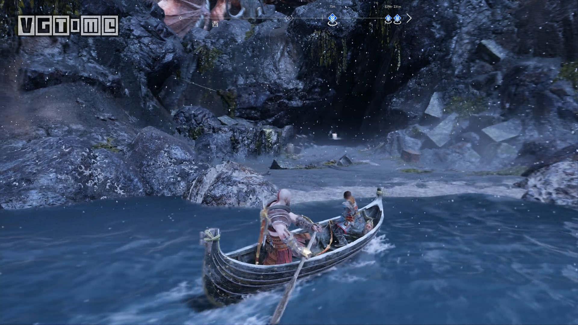 从下图的船坞登陆,点燃火盆。