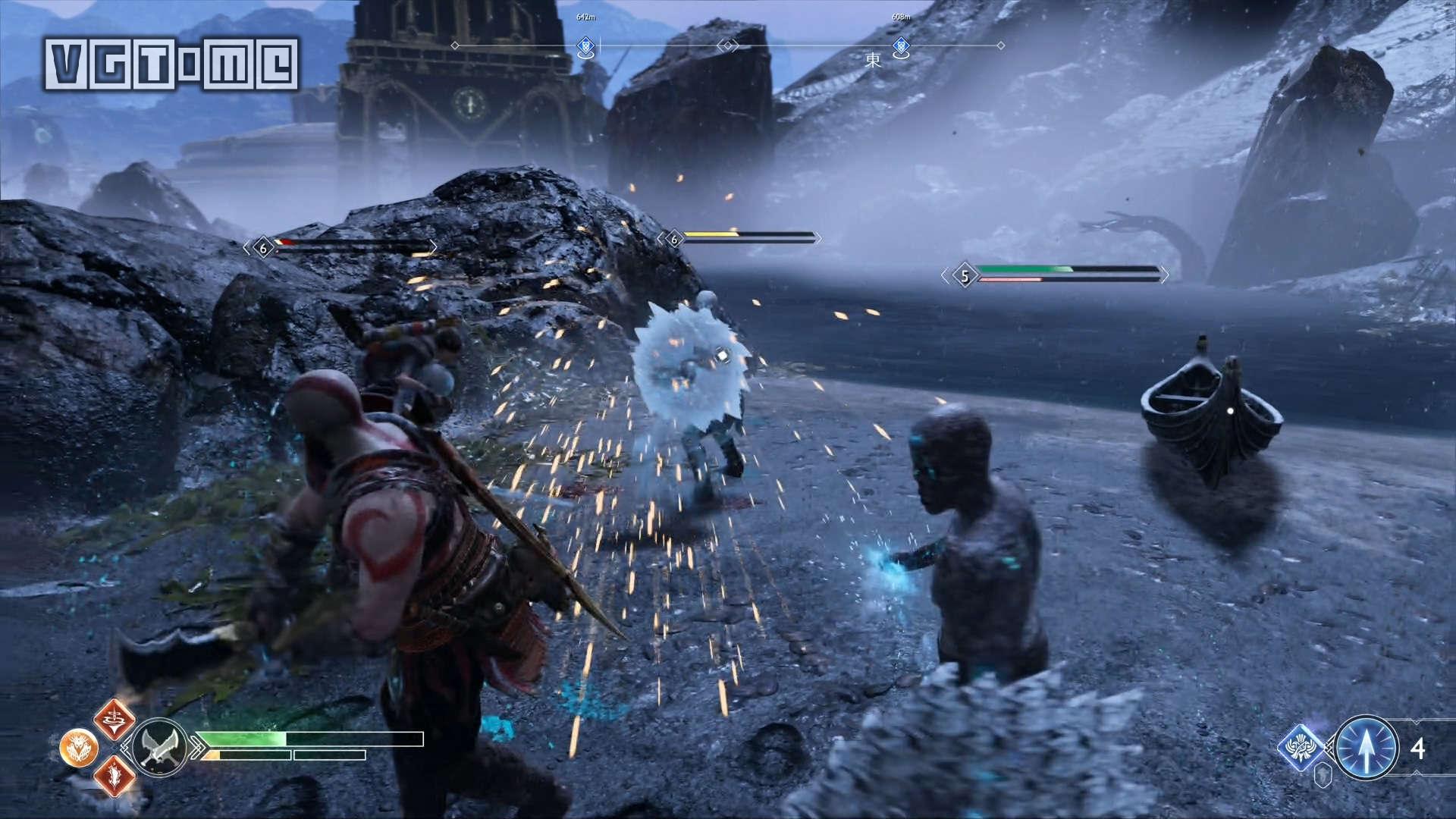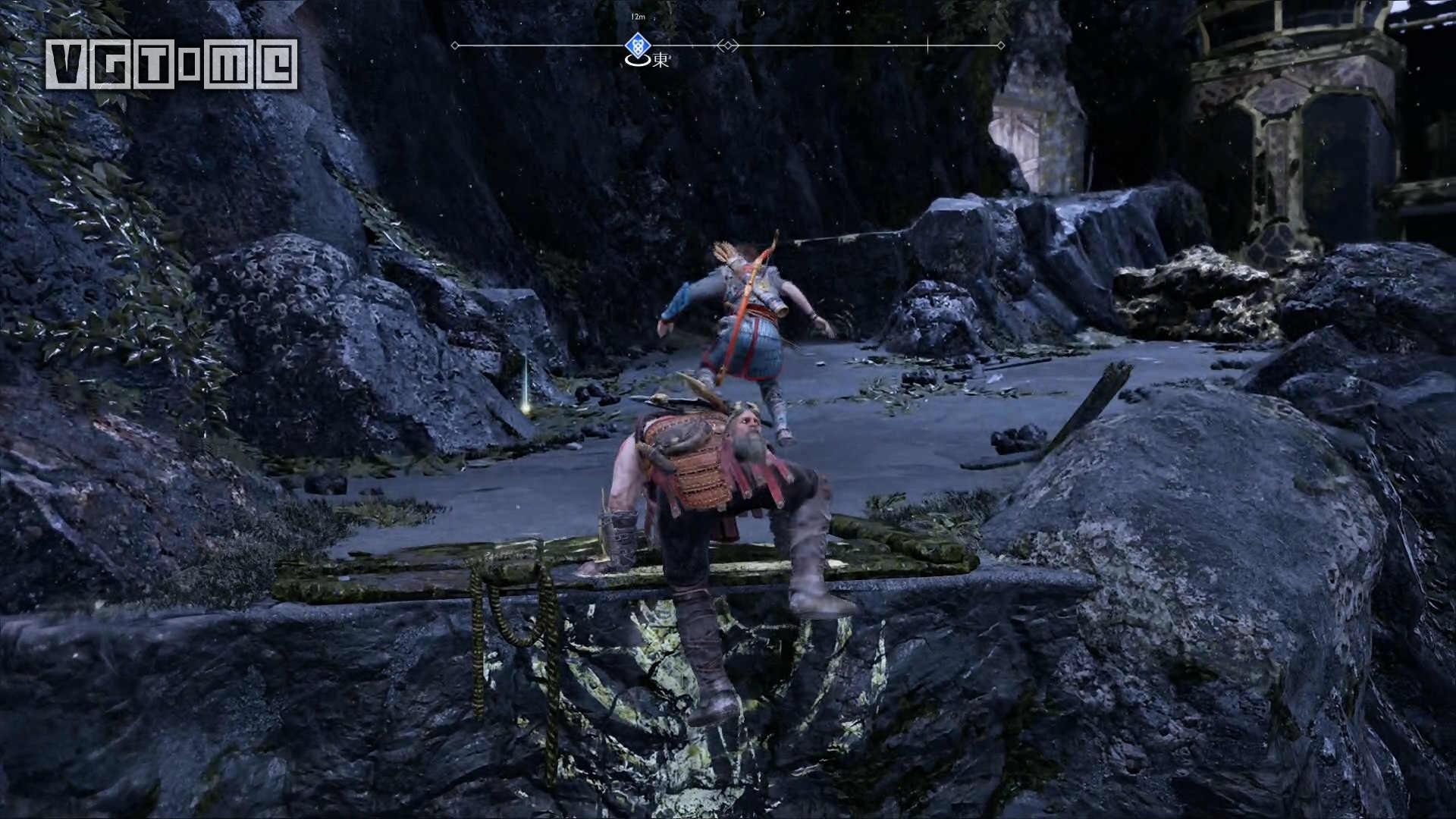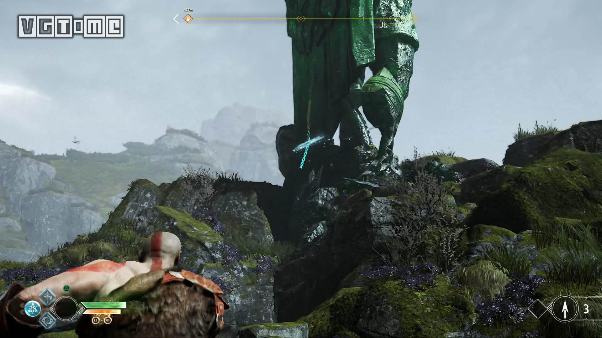 从大门进入一路来到维瑟嘉德,在托尔雕像处登陆,打掉下图中的几个锁链。