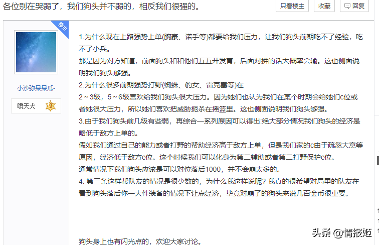 当其他英雄玩家还在研究怎么躲掉天敌的时候,狗头吧的老哥们在研究怎么闻经验;