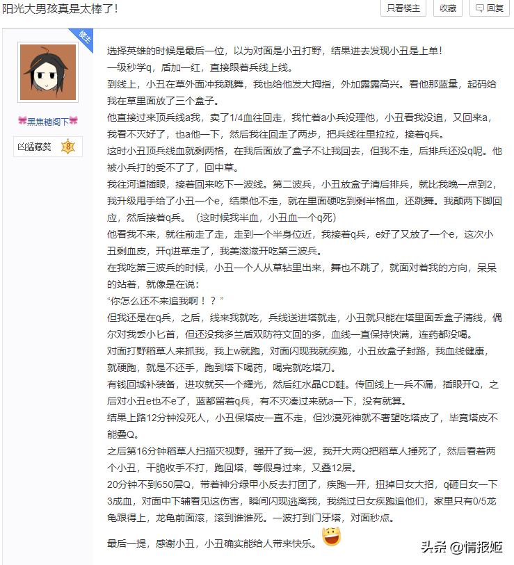 狗头吧老哥们不朽的名帖之一,就是下面贴出来的这个,如何对线阳光男孩小丑。
