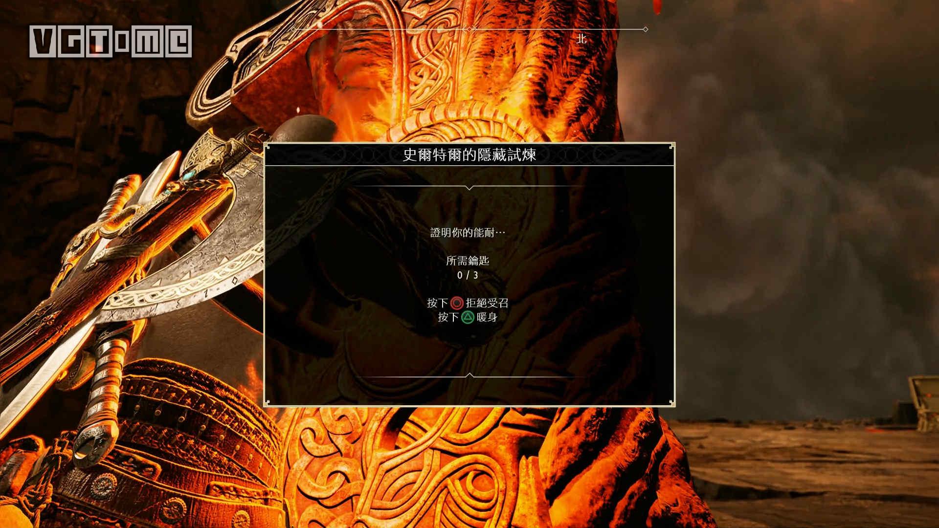 击败格恩达尔之后,山顶会出现巨剑,并提醒玩家可以挑战“史尔特尔的隐藏试炼”,不过要先收集三个钥匙。