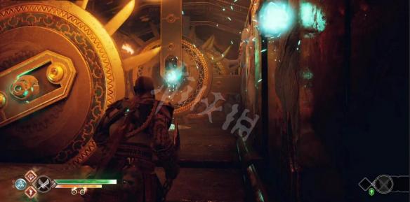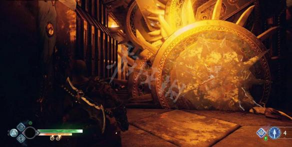 操作沙盘将平台下降,到底部后开启左边的门,通过旋转陷阱,房间内需要赫尔之风能量打开的门,先用门上的一个石球把能量转移到一旁旋转陷阱上,再把能量转移到一旁墙的石球上,让这个陷阱开始公转。
