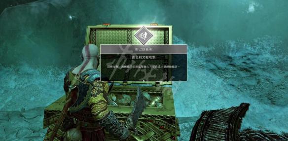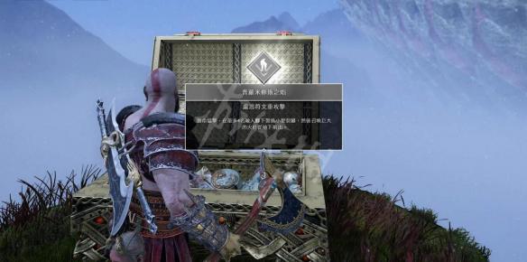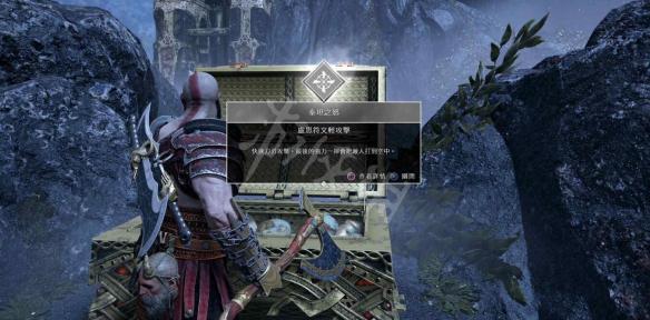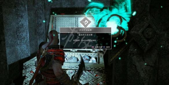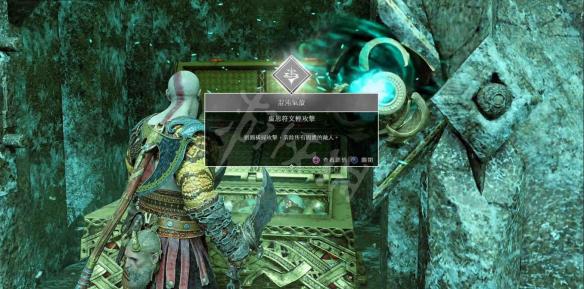 带着这个能量,跳过轨道车(提前摆放在两个平台正中间好让奎托斯能跳过去),打开门,里面有传奇宝箱。