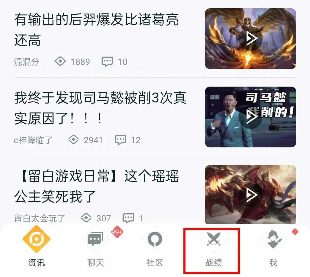 2.登录自己需要转移苹果的账号,在页面最下方选择“战绩”