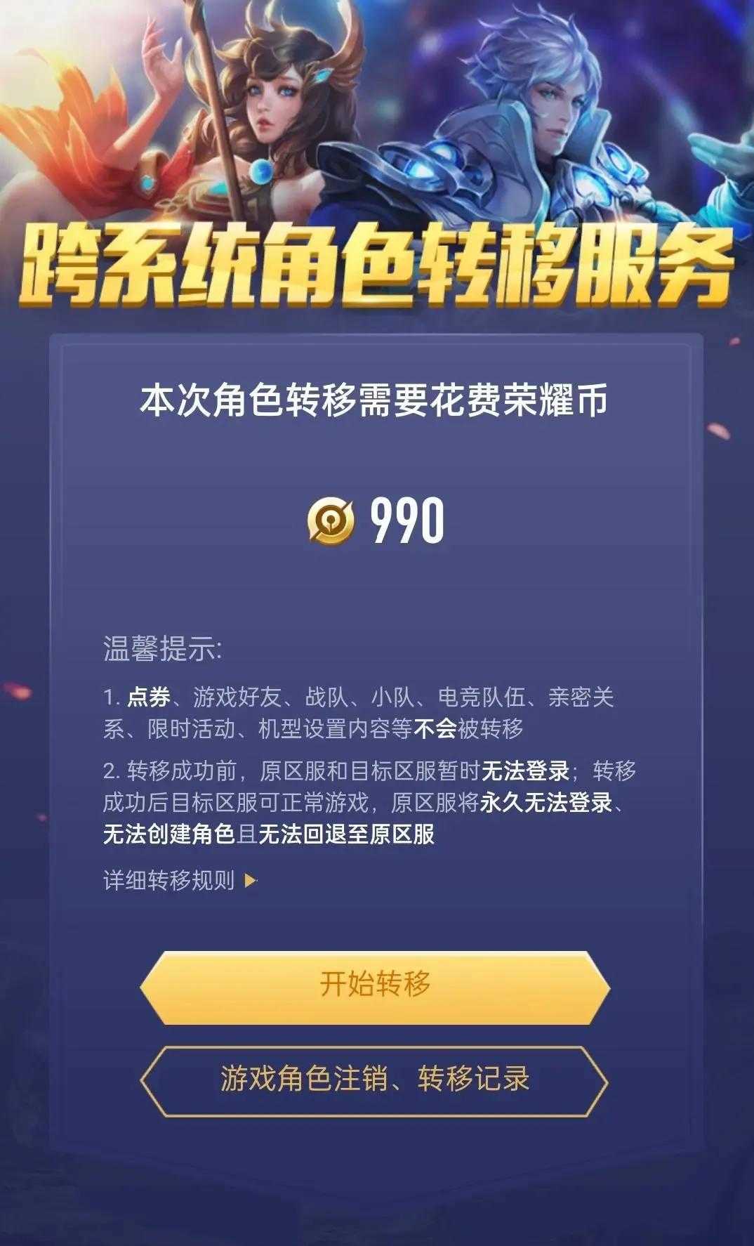 5.最后就是充值990荣耀币(99人民币),进行转移了。