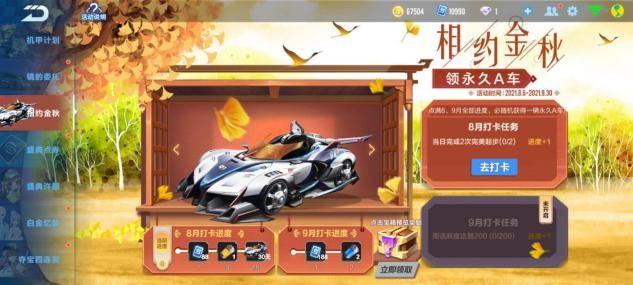 需要注意的是点满8月与9月任务,才能随机获得7个赛车里面的一个。