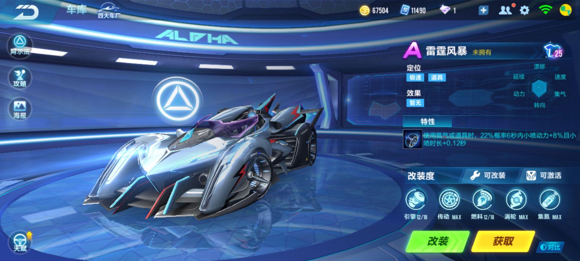 端游的经典赛车之一,可以通过做任务免费获得,特性跑图比较容易触发,也可以用于道具,基础性能比较弱。
