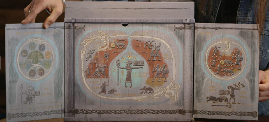 此前曾报道了《战神:诸神黄昏》游戏的各个版本的介绍,近日就有玩家通过收藏版和巨人版中提供的符文铁盒和地图尝试破译分析游戏的剧情。