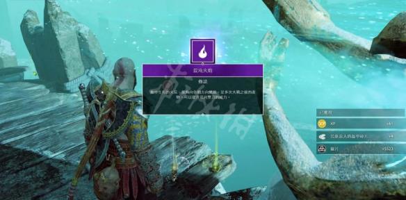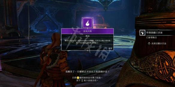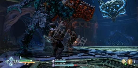 流程推进至和阿特柔斯与巴德尔一同落入赫尔海姆后,开启下图的门,就会遭遇一位荒原浪人。击败他可以获得混沌火焰。