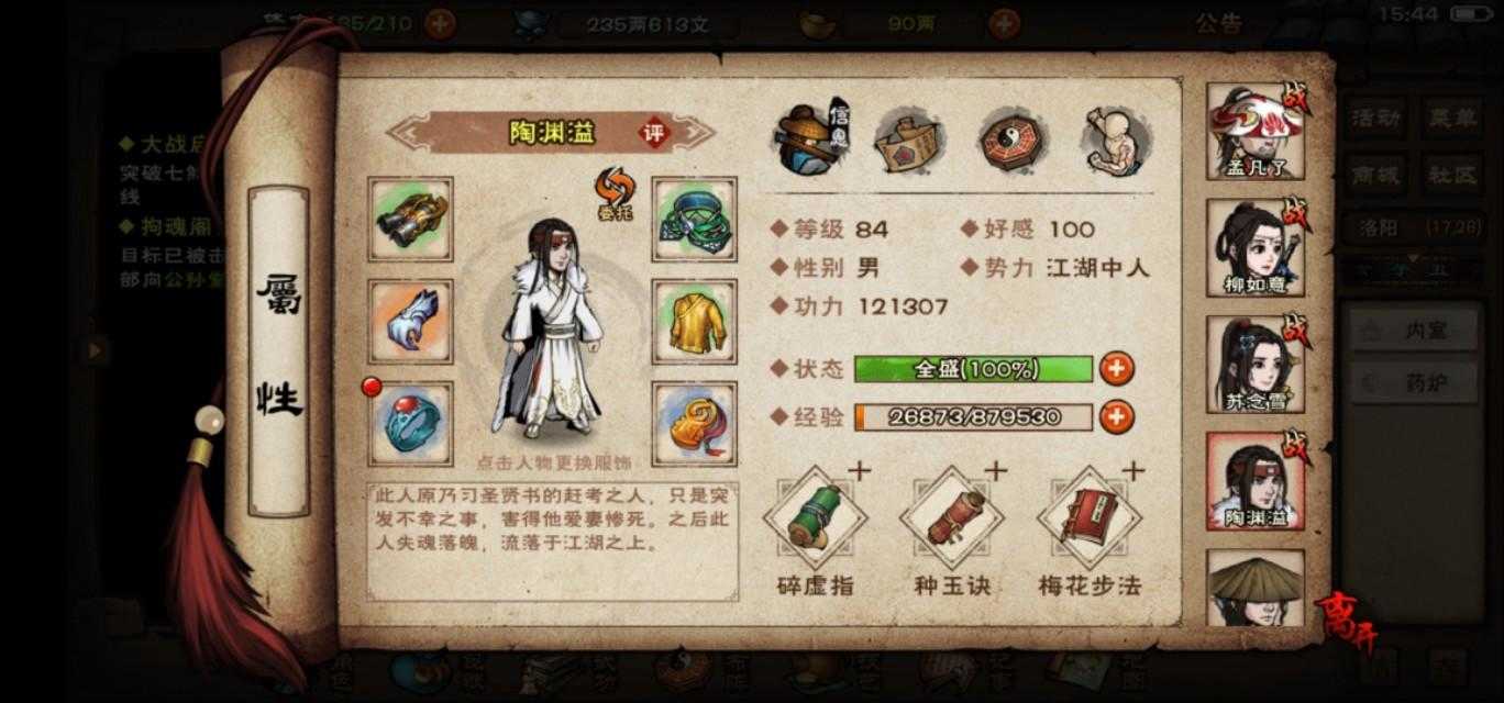 陶渊溢:陶渊溢要在完成专属任务后获取,是目前血量成长第三的伙伴,非常理想的平民前排人物。 而且陶渊溢的武学资质非常均衡【全是0.8】,刀剑拳棍任你选择。