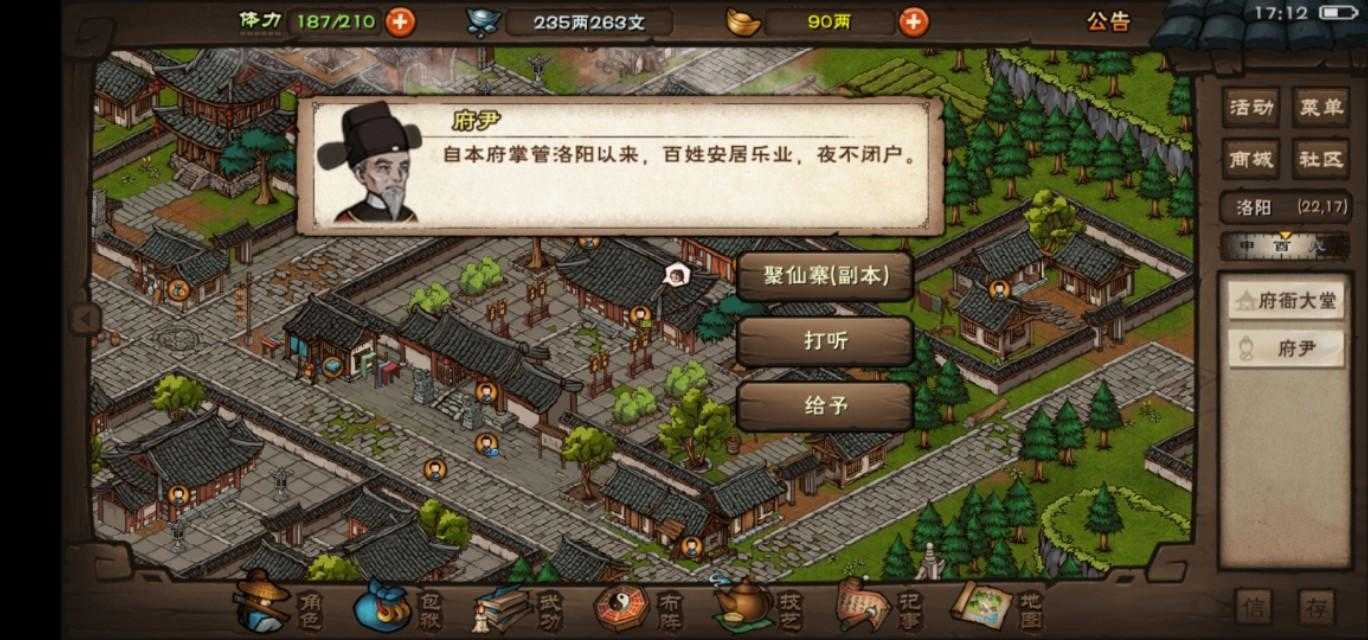 (2)南阳渡药铺打工,前提条件是你学会炼丹术,炼丹术也是在南阳渡药铺学习,向老郎中打听“炼丹术”,给他50文钱,就学会了。触发条件是你的银两得低于20两,每天可获取3两银子,这对于前期来说,是一笔不错得收入啊。