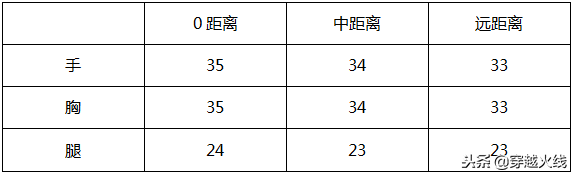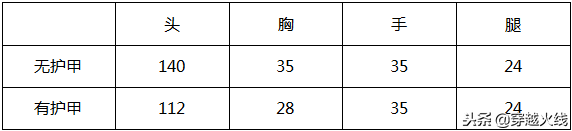 胸部伤害x4即为头部伤害,打中护甲的伤害须在此基础上另外x0.8 。