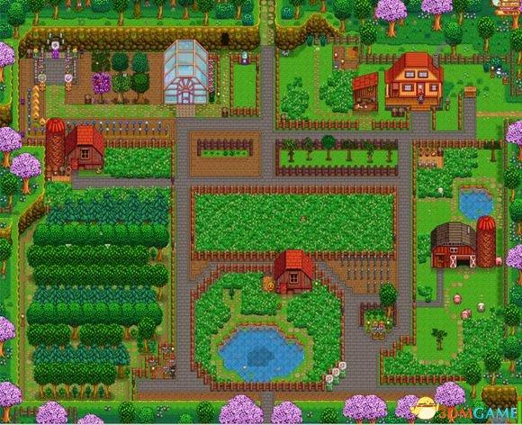 40、左上角小树林小道设计的不错,下面谷仓的位置就有点。。。