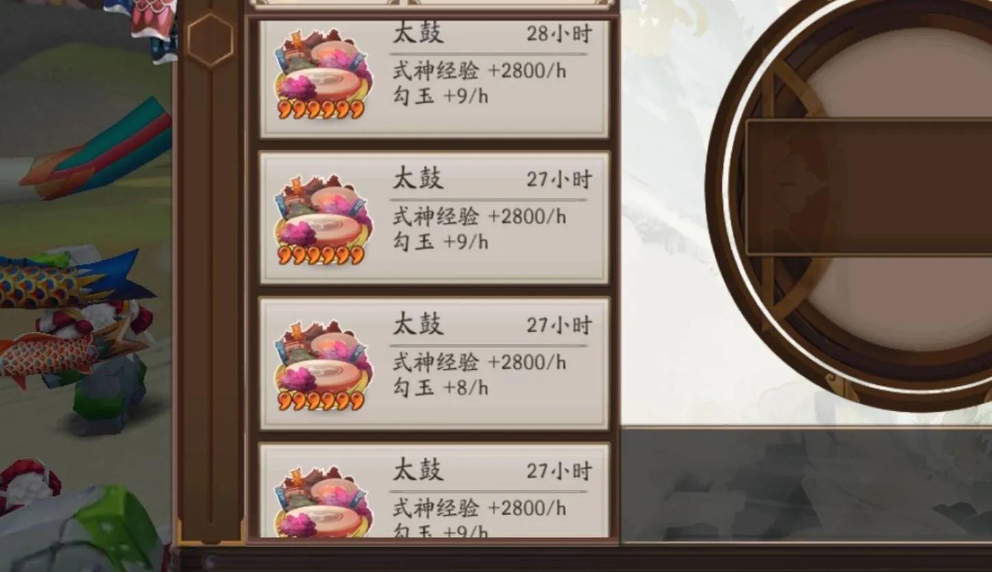 挂太鼓获得勾玉是非常快速的一种方法,先不说6星太鼓,5星太鼓的话一天200勾玉左右,哪怕是最差的4星太鼓一天也有140多勾玉。