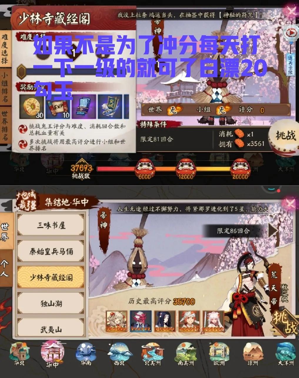 比如上面讲的地域鬼王每周分享。还有获得皮肤,抽到新式神等等。