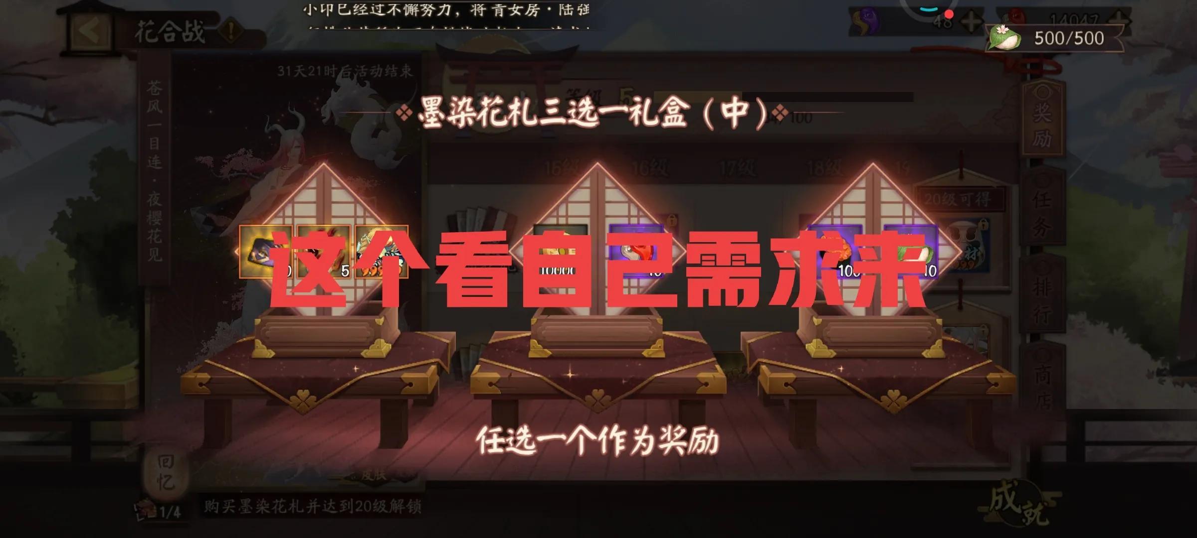 活动开勾玉箱子,这个就看活动币的积攒了,还有选不选择换勾玉。