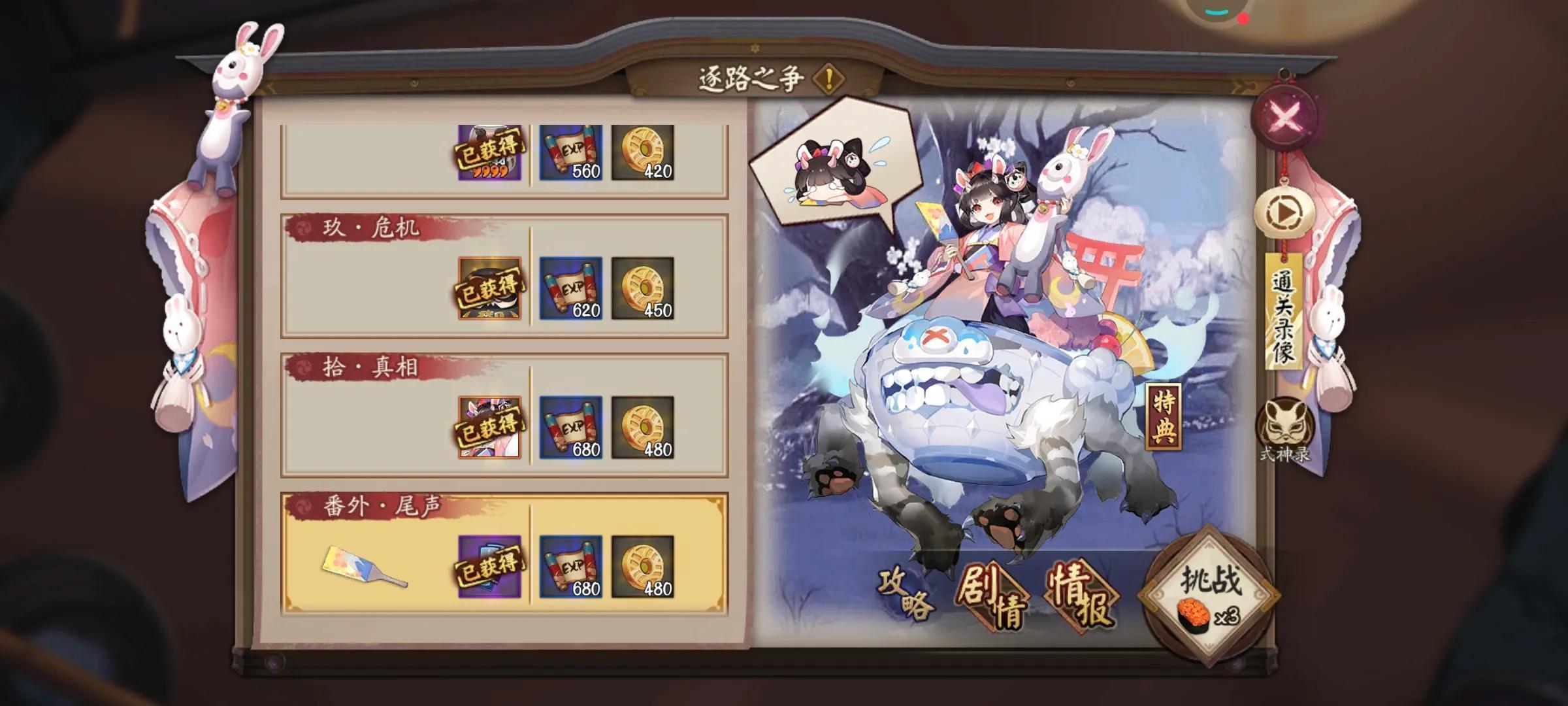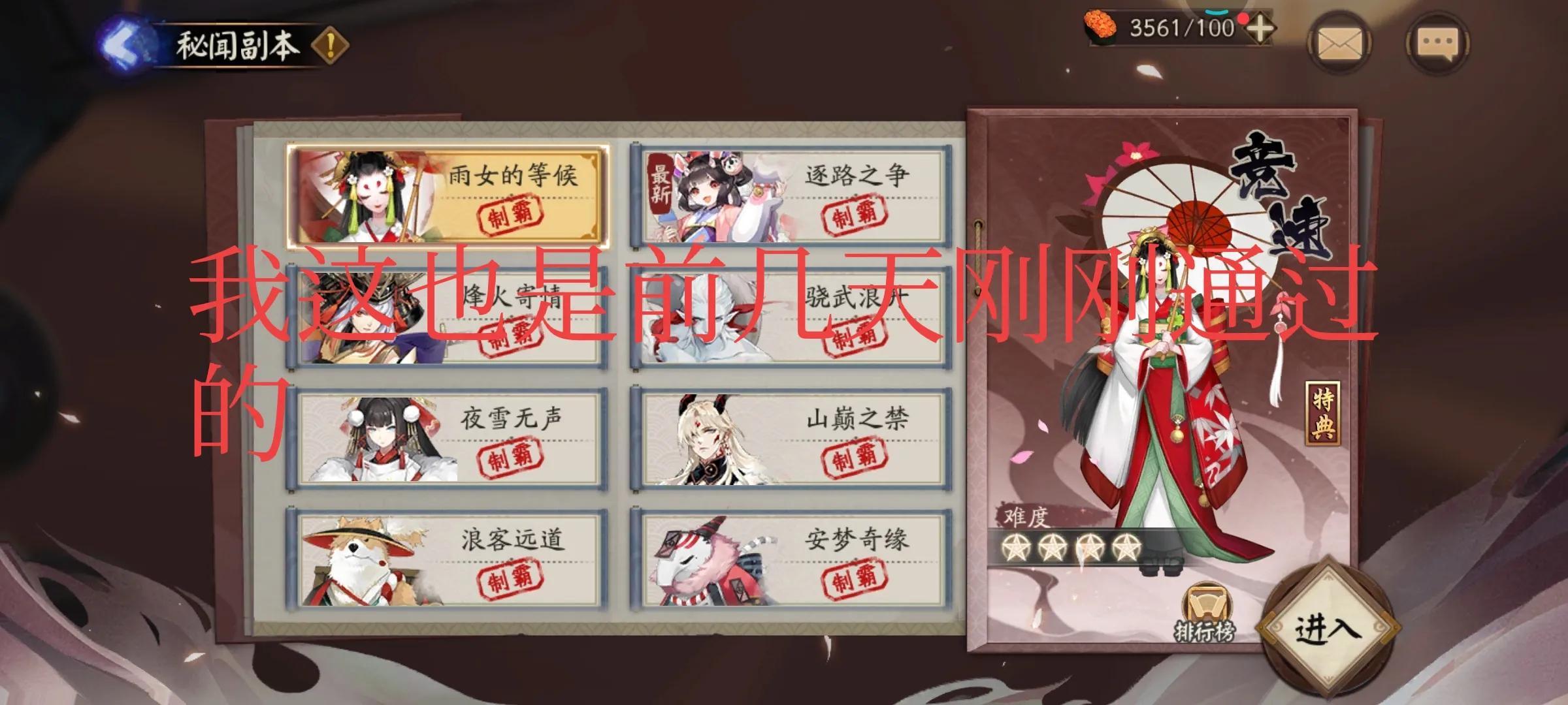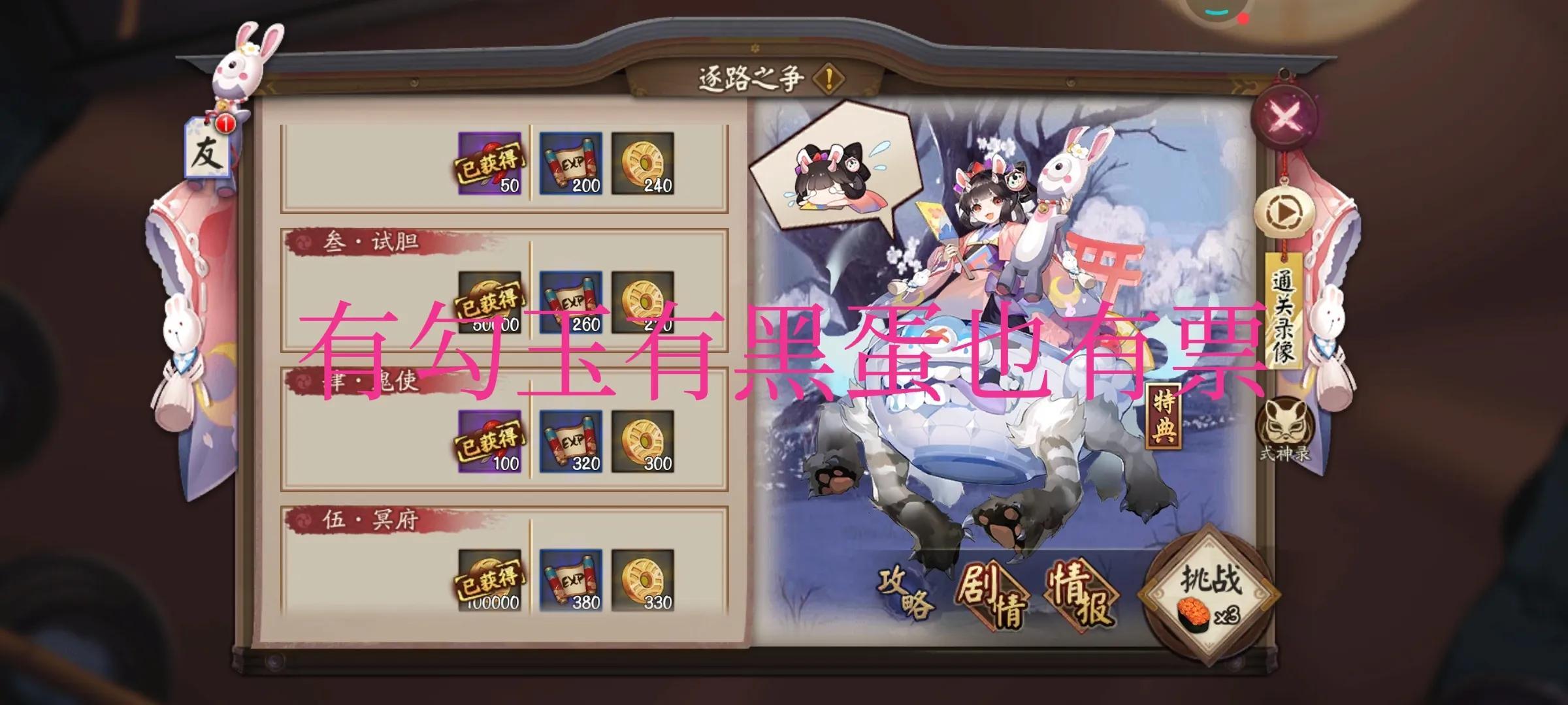 固定间隔时间一次的副本,有少量勾玉奖励。石距我个人打的少,感觉不是很划算。年兽和愤怒的石距推荐尽量打打。