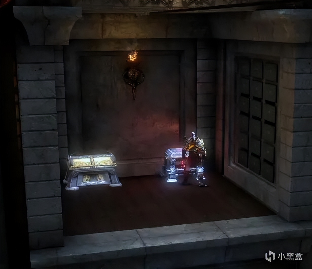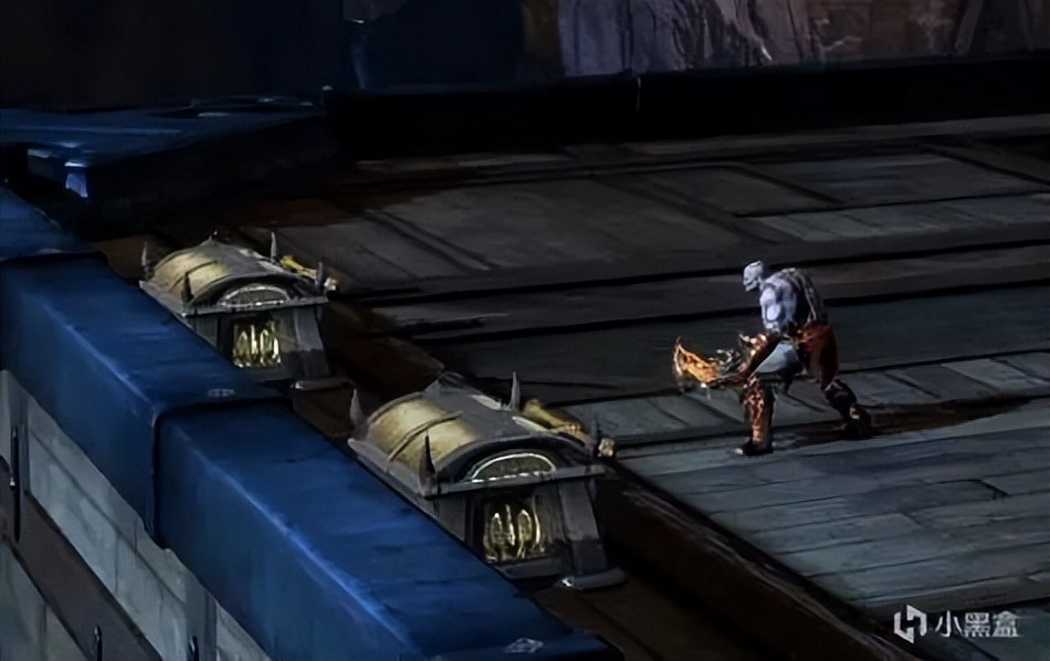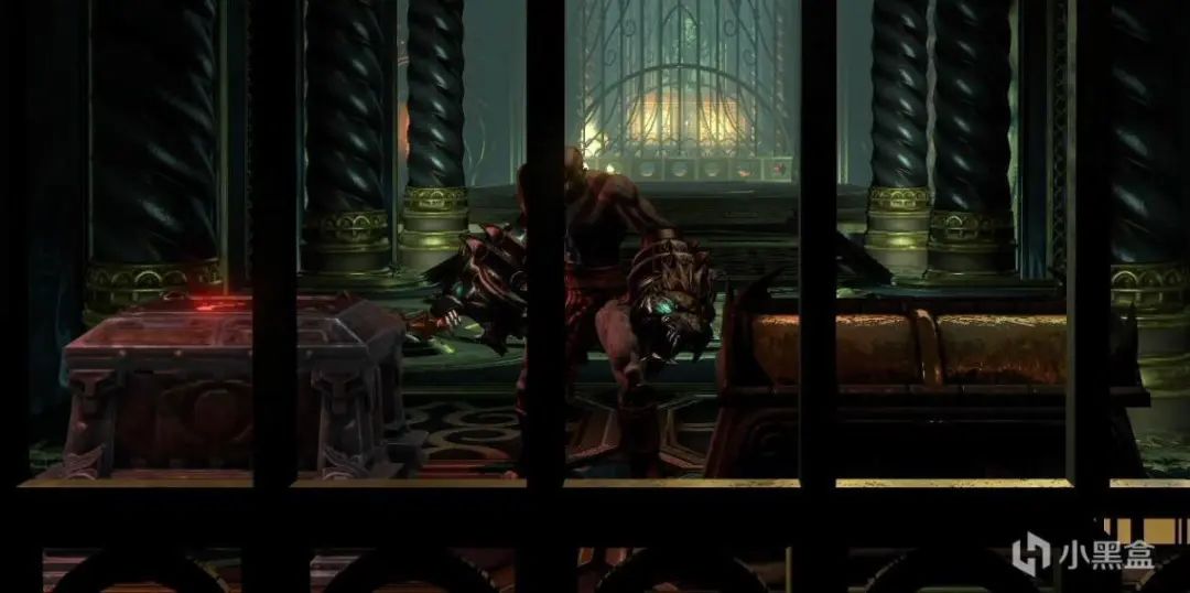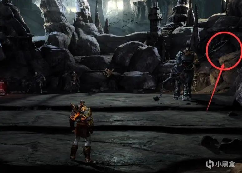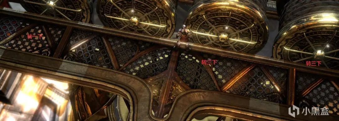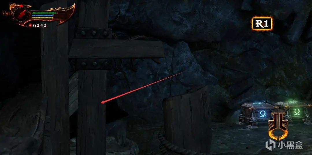 石头运上来之后先下到一楼,将中间的转盘转到底,然后快速去二楼拉动竖着的转盘,将石头卡住。右边同理,不需要石头卡。之后再次R1拉动棺材,触发BOSS战-冥神哈帝斯。