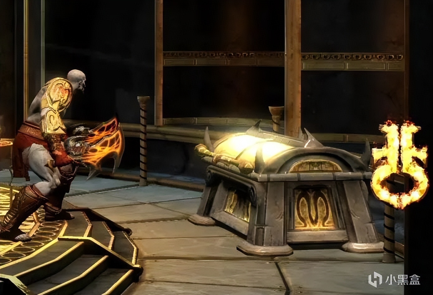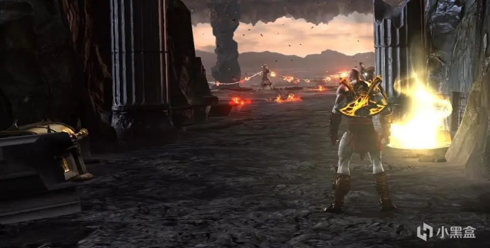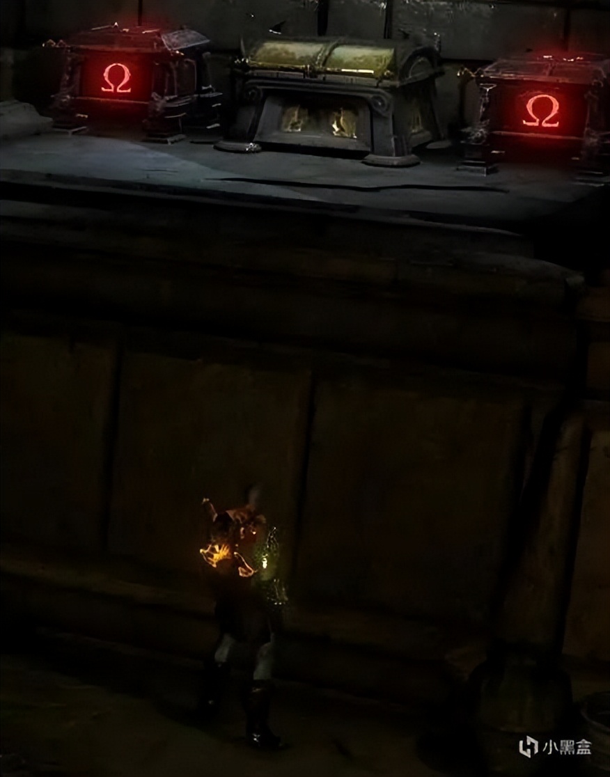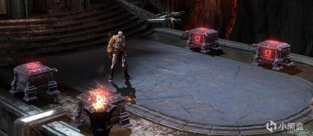 之后用弓弩把太阳神射下来,回到打半人马的平台勾引鸟人带我们过去清一波怪,左右打开门之后把左边的油罐推到右边,出怪后直接用弓箭射爆。之后回头拿宝箱,前方左边也有一个,之后继续前进到上方,发现残血的太阳神,他摇了一帮带盾小兵,打一下盾之后会下来个独眼巨人,拉开距离打出QTE往盾牌那里走锤爆,清完兵之后干掉太阳神,获得手电筒。解锁: