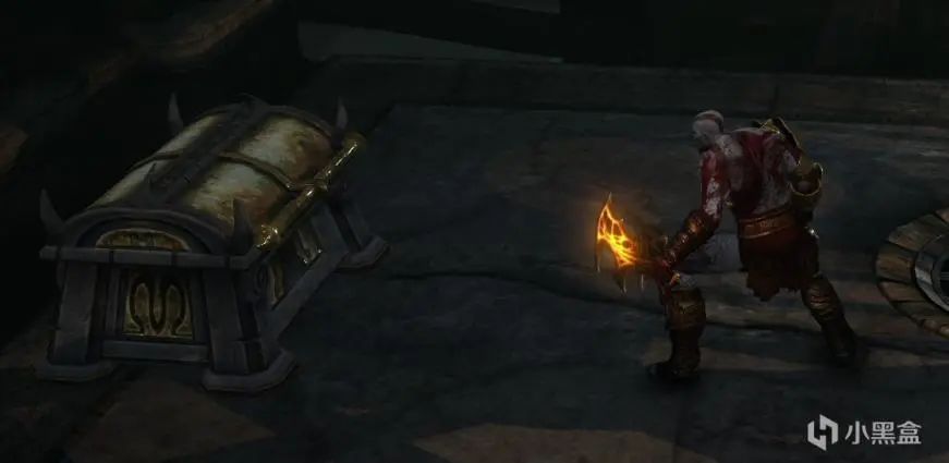 在盖亚被打穿地面砸坏时,跳下去有个红魂宝箱(拿不拿无所谓,这里说一下)。进门之后遇到第一只人马,不能用常规方法击杀,因为流程中只有三个半人马,涉及到奖杯。我们等其冲过来的时候通过QTE(顺时针左摇杆半圈)下血,最后人马头上有○时触发挖内脏的QTE(○○××)。