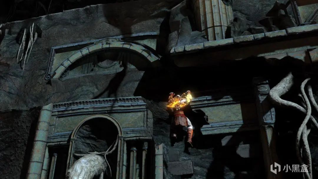 原路返回,通过阿波罗之弓可以解锁刚才藤蔓里的存档点。之后回去将牢里的鬼魂打掉收集红魂,往右走到刚刚放狗的地方,把火盆移到二楼藤蔓处,用阿波罗之弓打掉藤蔓飞上去,上面有凤凰羽毛
