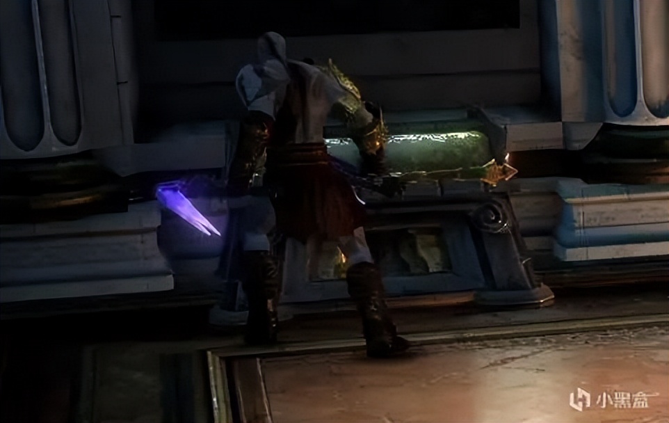 之后刷出一波小兵,清完之后哈帝斯又出来了,通过钩爪移动到他背面输出,之后触发QTE吸收他的魂魄。此时流亡剑可以升级至3级。