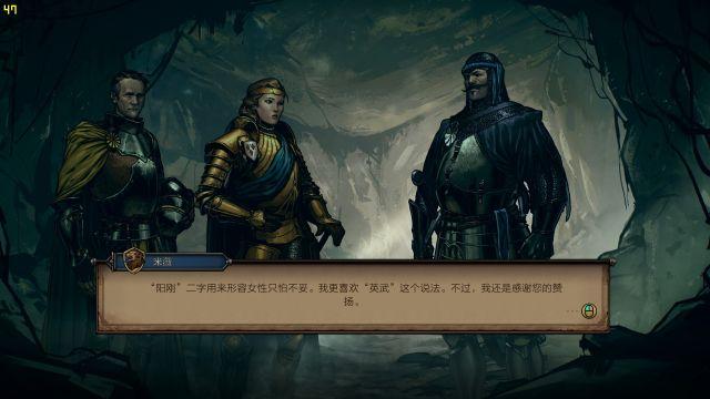 而“游戏”本身需要玩家去学习、去了解、去经历、去参与,一言蔽之,就是“代入感”的形成问题,本作的表现形式(并不出色的立绘、没有CG动画演出)和人物设定(并不是巫师系列玩家耳熟能详的主要人物)造成了玩家代入感的先天不足。而昆塔牌新手教程的游戏本质又进一步弱化了游戏“RPG”化的程度