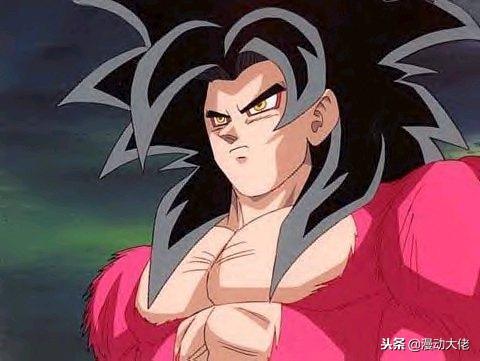 黑色披肩发,黑色眼圈,没有金黄色火焰,覆盖红色体毛,也是超越了超赛三的最新形态-超级赛亚人四。剧中有个设定是所有的招数对于超赛4来说只有第一次是有效的,再次使用对他就完全没有影响,悟空也是凭借着这个形态先后打败了六条邪恶龙,最后败给了结合了所有龙珠力量的一星龙。好吧,每当这个时候都会出现一个百试不爽的绝招-元气弹,只不过这次收集的是全宇宙的能量,打败了一星龙。