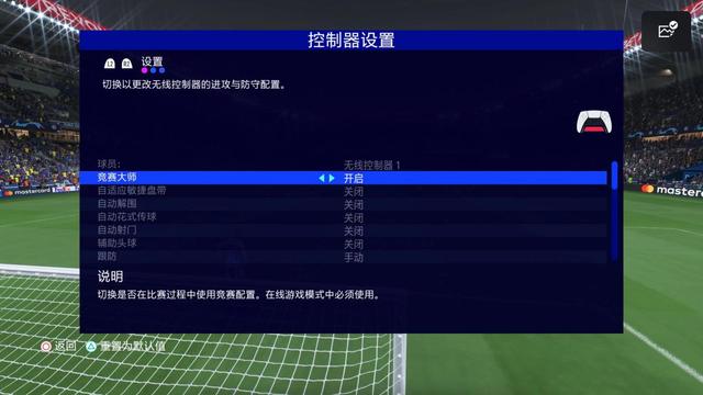 操作调整:新切换球员方式(按下R3再通过右摇杆选择三个防守球员中的一个),理论上是为了增加防守应对方式,但实际体验按下右摇杆的操作本身便容易误操作,在短时间能内不太好反应;协防球员增加了体力条,且增加CD不能无脑协防,也是对前作的削弱。新增竞赛大师操作设定,将线下与线上操作规则统一,便于练习。