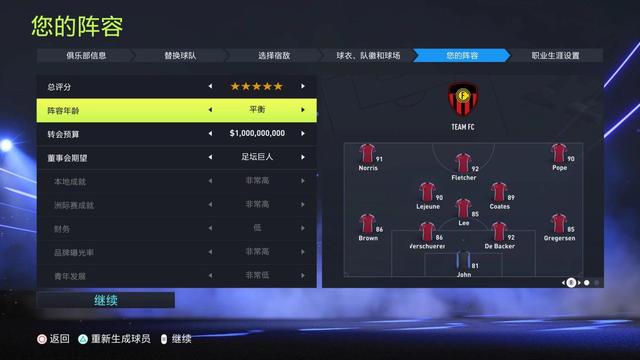经理生涯:新增加全新自定义球队(其实就是UT自定义的线下化),可以从设计球队VI和球场等多方面开始,打造完全属于自己的球队去参加想参加的联赛,当然要替换掉一支该联赛现有的球队。比较有意思的式初始虚部球员的选择,以年龄和球队实力星级来随机分配,可以从弱队一点点发展,也可以上来就“龙傲天”,运气好最多可以分配到5个90以上综合能力值的球员,虽然这些球员花式和逆足都很差,但带来的随机性还是颇有乐趣。财政接管今年也扩大到了10亿,比去年多了1倍,上来先用解约金砸姆巴佩和哈兰德,让你过足土豪的瘾。
