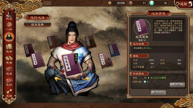 不过麻烦才刚刚开始,你支线做的少,就意味着你获得的“内功心法”和“武功”少,你在后期会非常难打。人物有多种属性,但是只能通过升级心法和八卦提升,玩家也只能武装三件装备。属性最主要来自心法,升级心法获得的属性永久加成到人物身上。心法可以同时学很多种,每种有10级,心法等级越高,升级得到的属性越多。也就是说,支线做得多,心法就多,心法多了,人物就更强力。那么支线做的少呢?怪物越来越强,你就剩下被虐的份了。伤害低、打怪慢、体力内力不够用,药喝个不停,喝完了只能等死,敌人伤害高不留神就被一套秒杀。原本设计优异的支线成了毁灭游戏体验的破玩意儿。好吧,还是回头做支线吧。