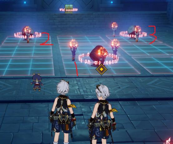 剧情支点【埃伊亚遗迹冒险】中,零失误解开机关,即可完成。步骤:先选两人一起开机关,进入下一密室,按下图开机关。