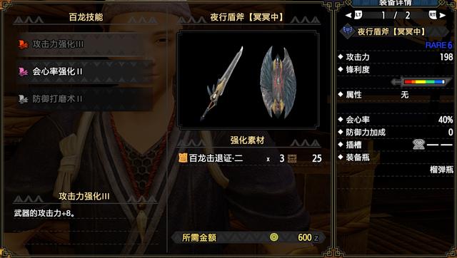 武器方面的百龙技能个人推荐攻击力强化3,稍微弥补下攻击力不足的缺陷。