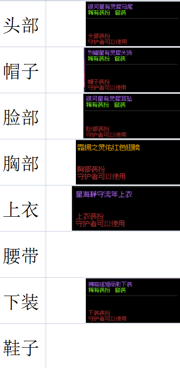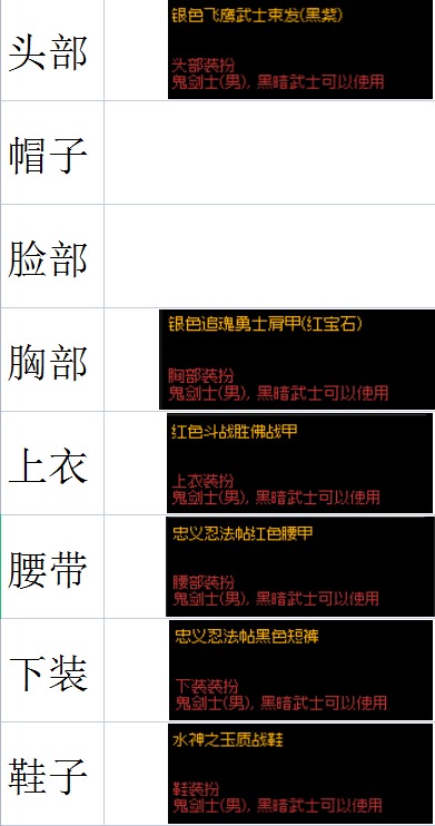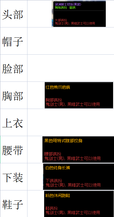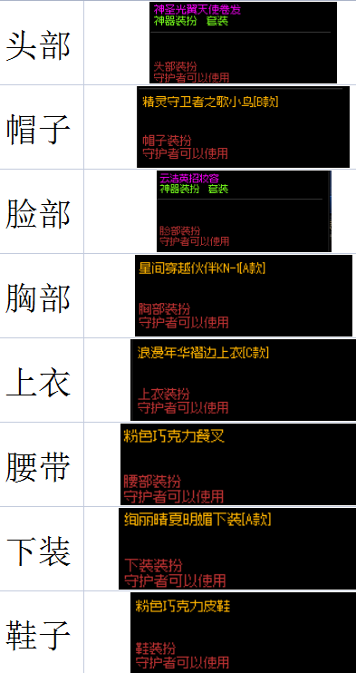 (节日礼包里的白色版透明部位可以覆盖掉职业特征的效果,例如女鬼剑肩部、男鬼剑头部护额等)