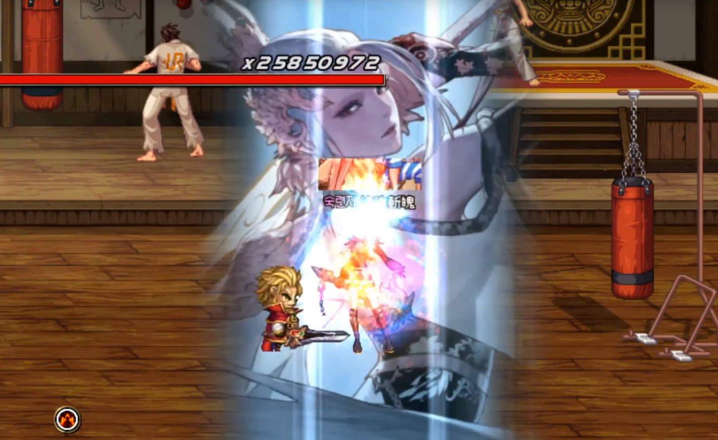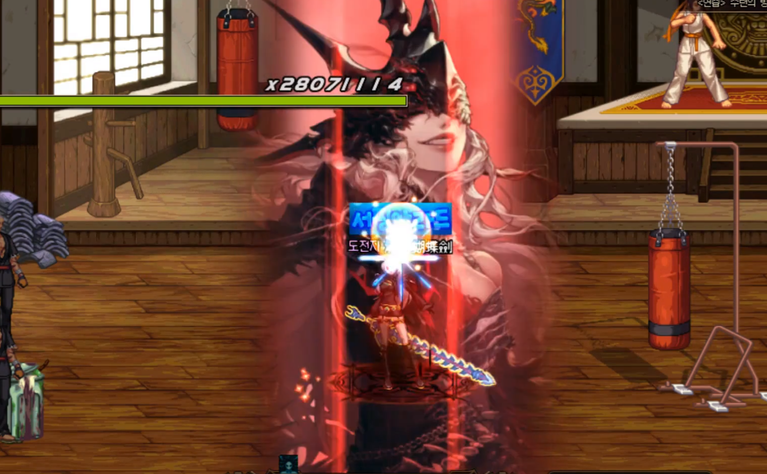 当已经成功三觉的剑帝在地下城中施放BUFF技能时,会出现一个类似与三觉插画的特效,这一个或者可以说是剑帝的BUFF插画效果,并且这一个效果不是单纯的一张静态图片,这一个插画实际上是官方绘制的女鬼剑立绘图片制作成的动态效果,剑帝施放的时候插画眼睛会闭起来再开启,这就是大家说的貌美如花了吧。