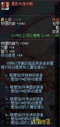 这套是组队套装,4人组队是55的白字,500的力量,20的全属强,80点的物攻。对队友的加成能比得上半个奶爸了。