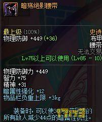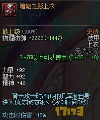 全程的60白字,并且散件还加了一大堆属性,对伤害提升不俗,只是自身身上有一大堆DEBUFF的确是件很不爽的事情。这套史诗也是位数不多可以和85SS叫板的75SS。