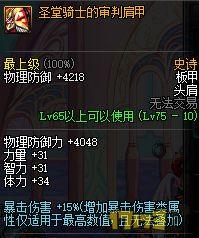 光剑洛克胸甲总共能提升大概200左右的力量和7%的暴击率。巨斧腿有超高的基础攻击力和50点的物理攻击力。牛头统帅四人组队的时候效果不错,并且对于艾格尼斯和地板娘这两个可以眩晕的怪有奇效,打血和风的时候要最好取下来,虽然乌鸡攻击次数不高,但是一但触发了就很头疼。誓血上衣在HP50%以下时,单件可以提供500点的力量,需要有意识的压血。