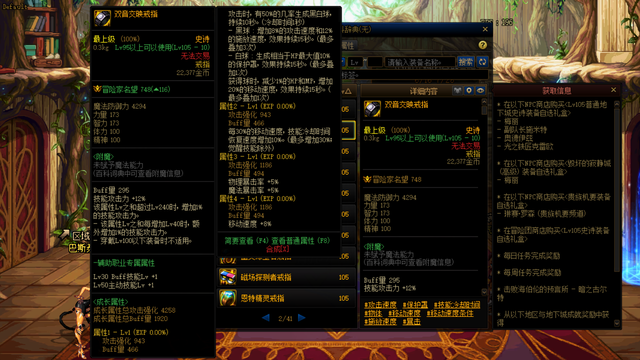 戒指:BUFF量最高的是【无尽的痛苦之戒】,不过有负面属性,次选【双音交映戒指】获得速度和CD恢复速度的加成,或BUFF量稍微高一些的【血色结晶戒指】。