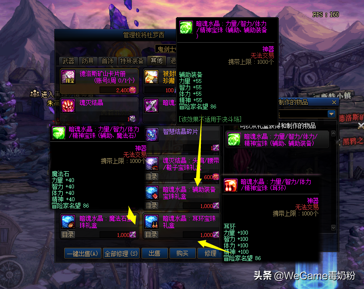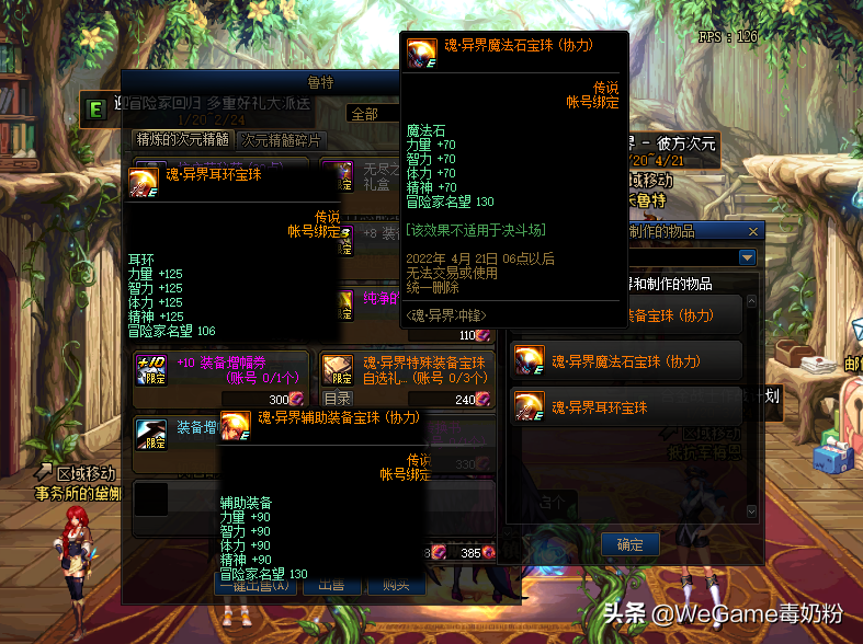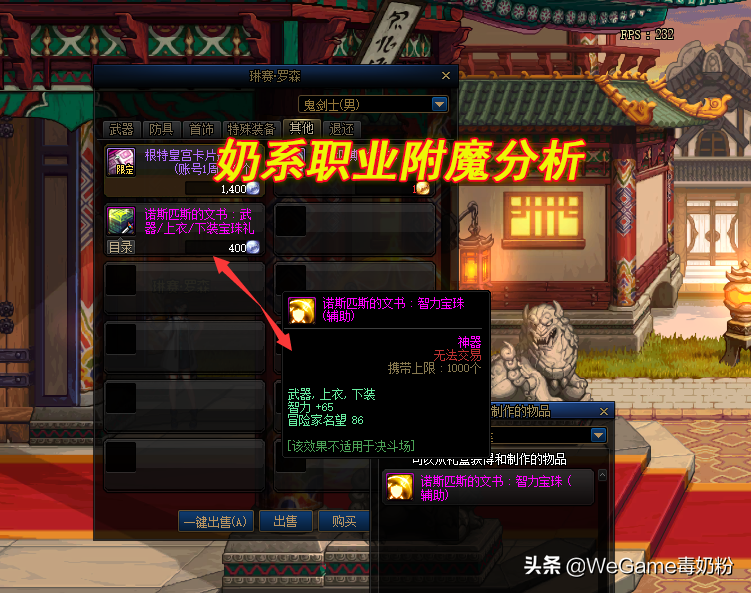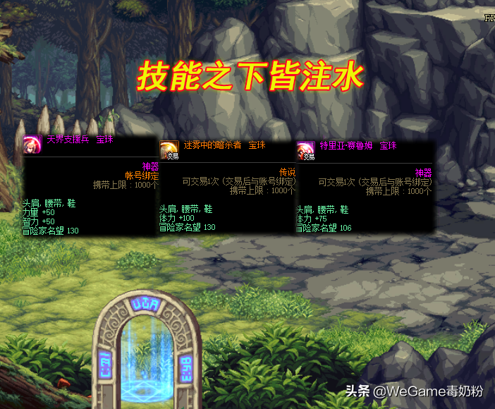 特殊点就是基础附魔等于韩服顶级宝珠:50智力的支援兵宝珠!超时空漩涡35个反物质可以换,炽天使和小魔女起步附魔,至于神思者可选择“迷雾中的暗杀者”,满属性为100体力!400多W金币,如果觉得太贵,75体力的“特里亚·赛鲁姆”也行,还有切斯特小镇免费的65体力,总之技能宝珠之下皆为注水附魔。