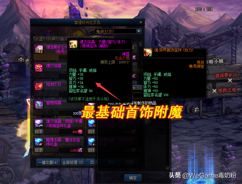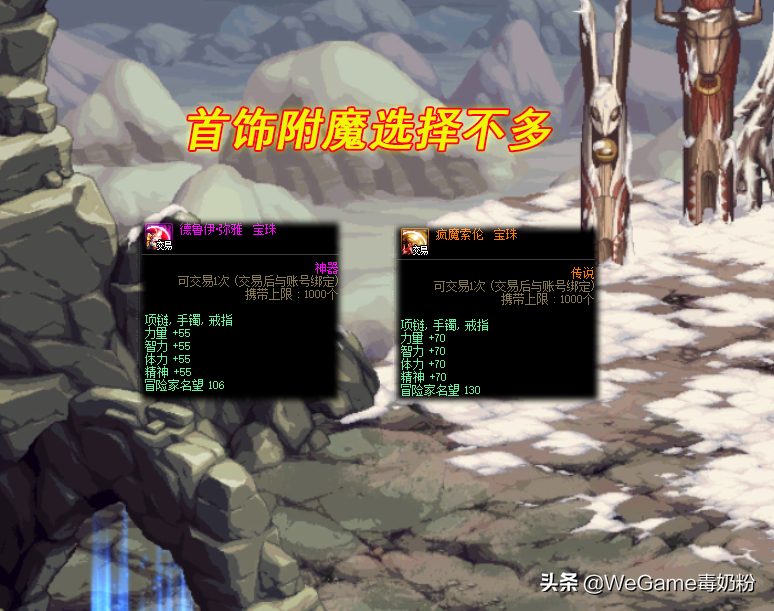 最基础级别的首饰附魔:魂灭结晶的免费宝珠,38智力和34体力。不过“魂·异界”商店可换四维50的首饰协力宝珠,可惜只能换3个。