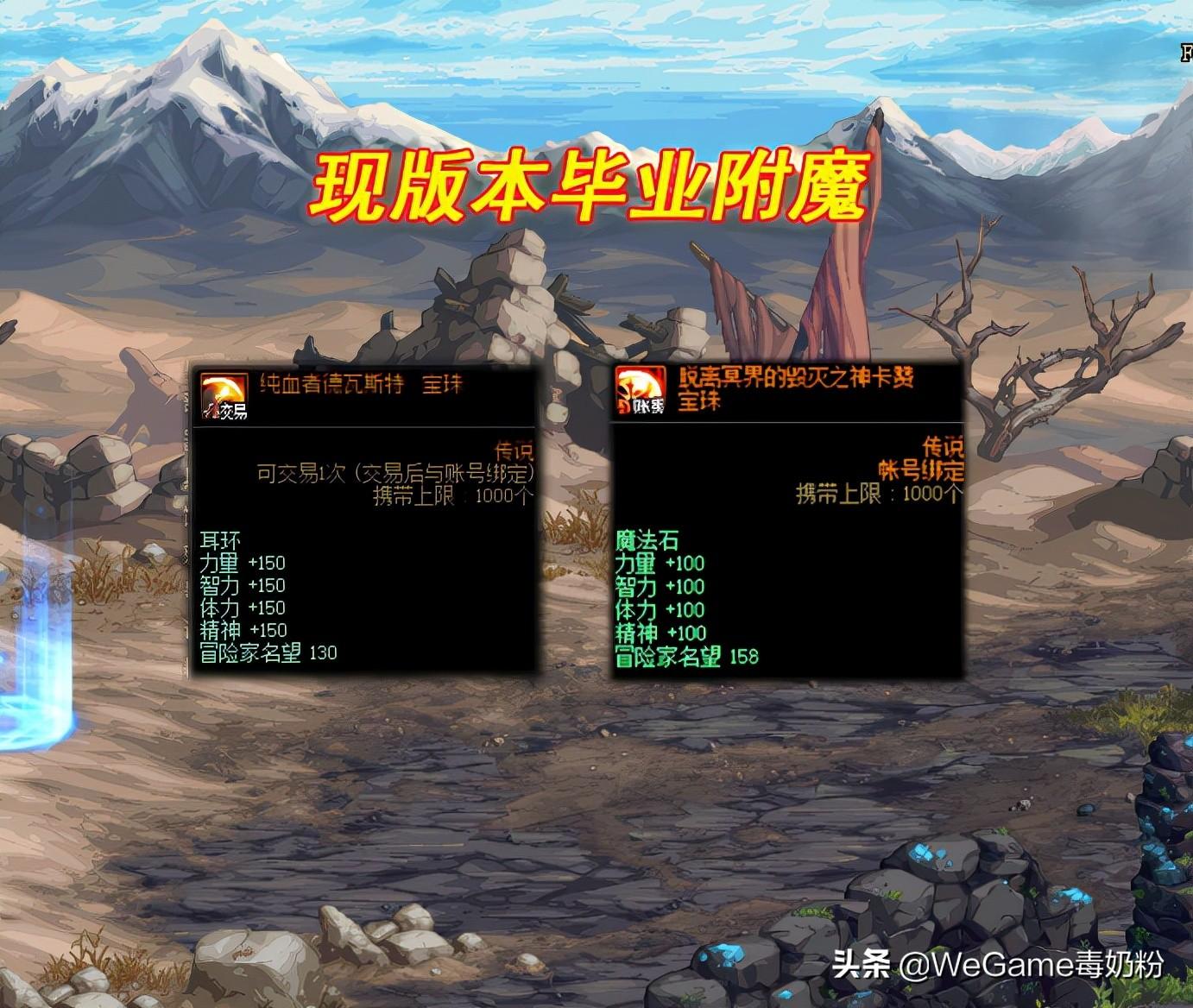 毕业附魔:左槽就是满属性的“毁灭之神卡片”宝珠,100四维。右槽建议一步到位!奥兹玛产出“100点四维”的特殊竞拍宝珠,价格不等,如果没人抢,版本末期400W就可能拍走。至于耳环和输出一样,150四维的“纯血者”宝珠,2000W金币左右徘徊。