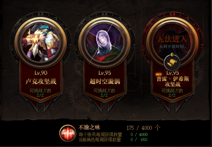 各大副本其实当前主要的就是2个团本,还有就是一些比较重要的周常副本,这里的周常副本并不是说赛利亚防具的那个狗头呀,而是指鸟背这一些。