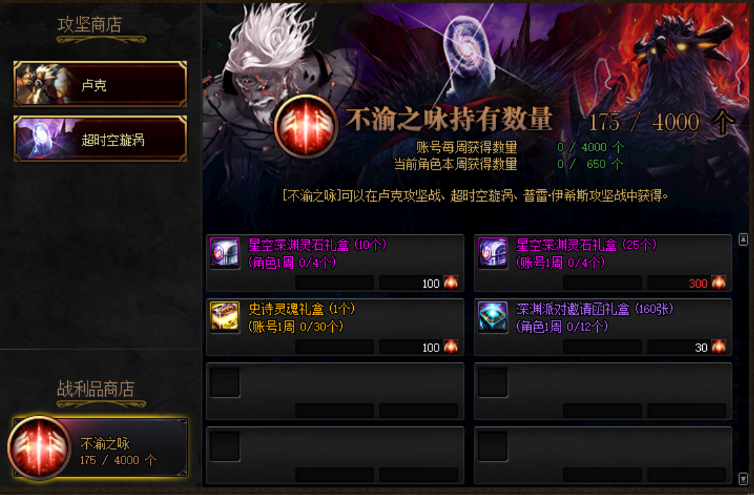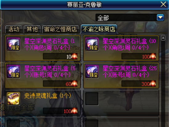 2是攻坚商店不渝之咏刷新时间、苍穹碎片兑换次数重置时间、赛利亚旧版不渝之咏和宿命之恒奖励兑换刷新时间均为周四;